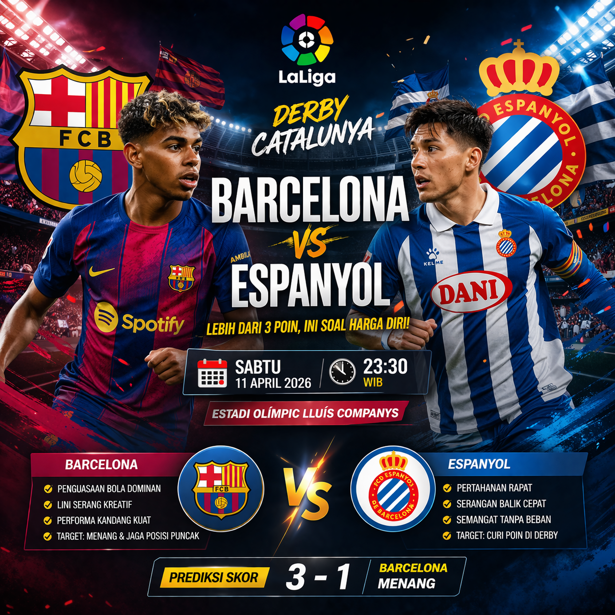 Prediksi Barcelona vs Espanyol 11 April 2026: Derby Catalunya Sarat Gengsi, Siapa Lebih Berkuasa?